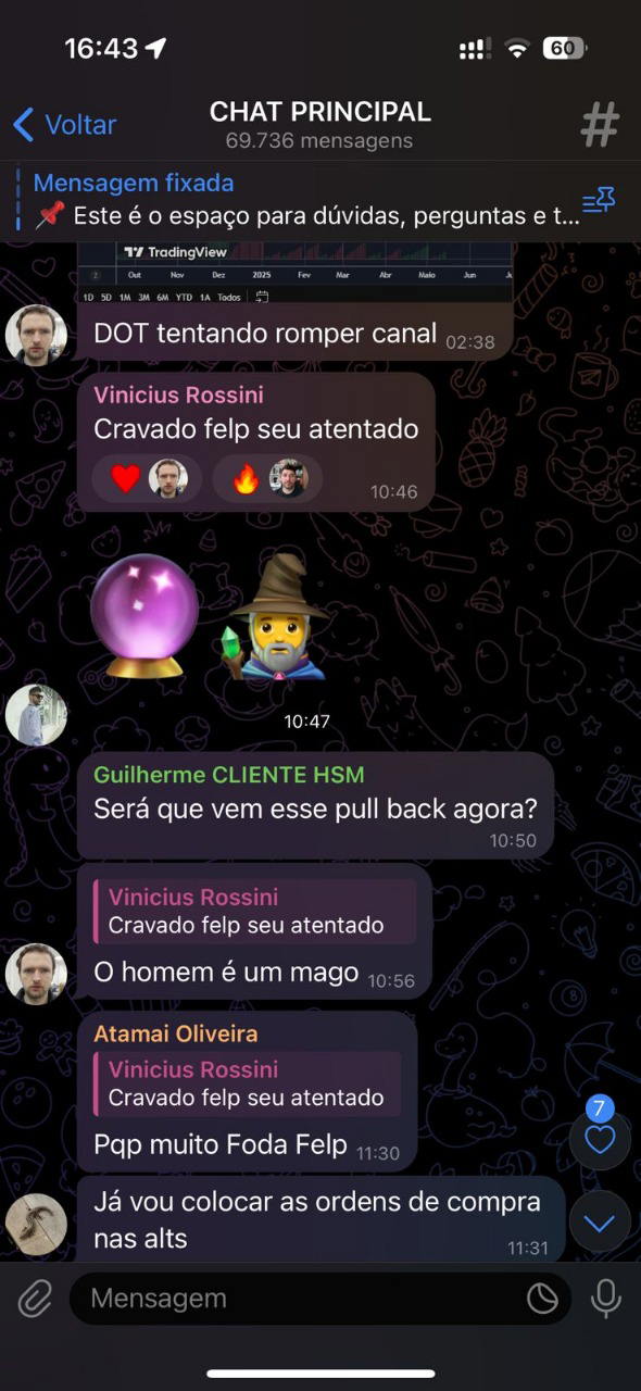 Hoje, lidera um ecossistema que inclui sala de análises premium, relatórios on-chain, conferências, cursos e mentorias, impactando milhares de pessoas que desejam não apenas aprender, mas viver o mercado de forma profissional.